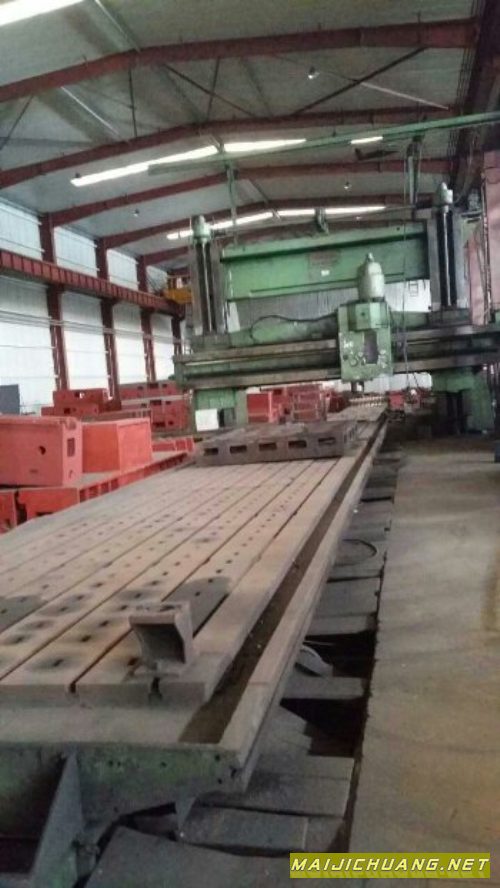 美国产16米龙门铣简介 16米龙门铣床,型号:HDMR/3000×16000,设备编号为069-24,2005年美国进口设备,1978年产于美国FARREL NEWTON,机床横梁采用动梁式龙门结构,横梁、立柱为矩形导轨结构,床身导轨采用平V型导轨结构,X轴为蜗杆传动,Y、Z方向为丝杠传动,结构合理,刚性足,切削性能优异。 龙门门距为4700mm,工作台长度:16500mm工作台宽度:2800mm高度:2500mm,立铣头为进口齿轮箱传动,手动变速,主轴BT\NT50刀柄均可装夹,最高转速600r/min,配有万向、直角、扁直角、外挂铣头等4件附件头,程控操作系统。